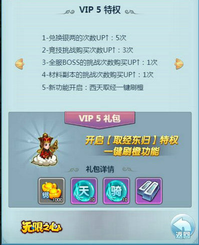 《无限之心》致力于打造良心精品回合制游戏,全面照顾所有玩家的利益,让平民玩家不还钱也能玩得好!所有玩家上线即可获得VIP5特权,享受VIP专属的各类福利,依靠自己的双手就能获得高阶战力,逆袭大神不再是梦!