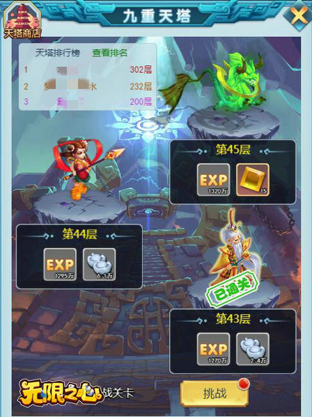 如果你想更快速的获得更多的经验,副本是最佳的选择。完成了坐骑副本的任务以后,你就可以去主城的副本里找到九重天塔,这个副本可以获得大量的经验、银两和金装碎片奖励,而且通关的层数越高,获得的经验也越高,绝对的事半功倍!