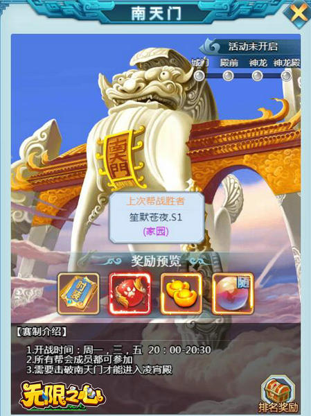 除了帮会BOSS,帮会战也是需要帮会成员一同参加的一大活动,同样也能为帮会和自己带来大量福利!而且帮会战是跨服比拼,天下帮会齐与一战,你可能会遇到来自其他服务器的强者,战斗更加激烈!还有丰厚的拍卖奖励、排名奖励、神龙奖励,更多的惊喜和荣誉等待着你们!