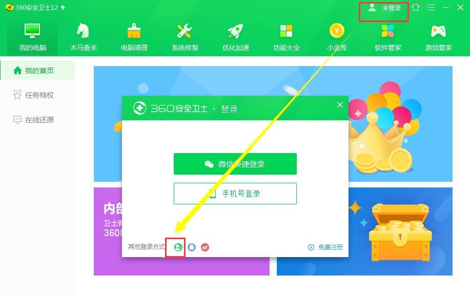 2、登录360安全卫士的账号需要和登录游戏的账号一样!